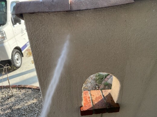 建物に付着している砂や汚れ、苔、カビなどを洗い流しキレイにしていきます