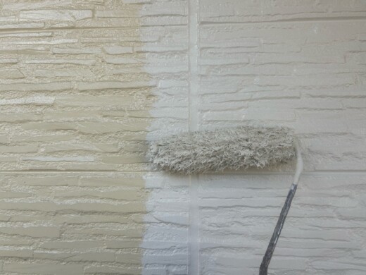 外壁材と上塗りをしっかり密着させる為に、下塗りを行います