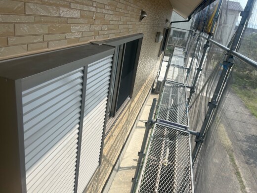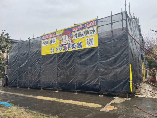 お客様、ご近所様へ配慮し足場職人が作業を行います