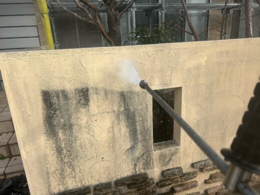 建物に付着している砂や汚れ、苔、カビなどを洗い流してキレイにしていきます