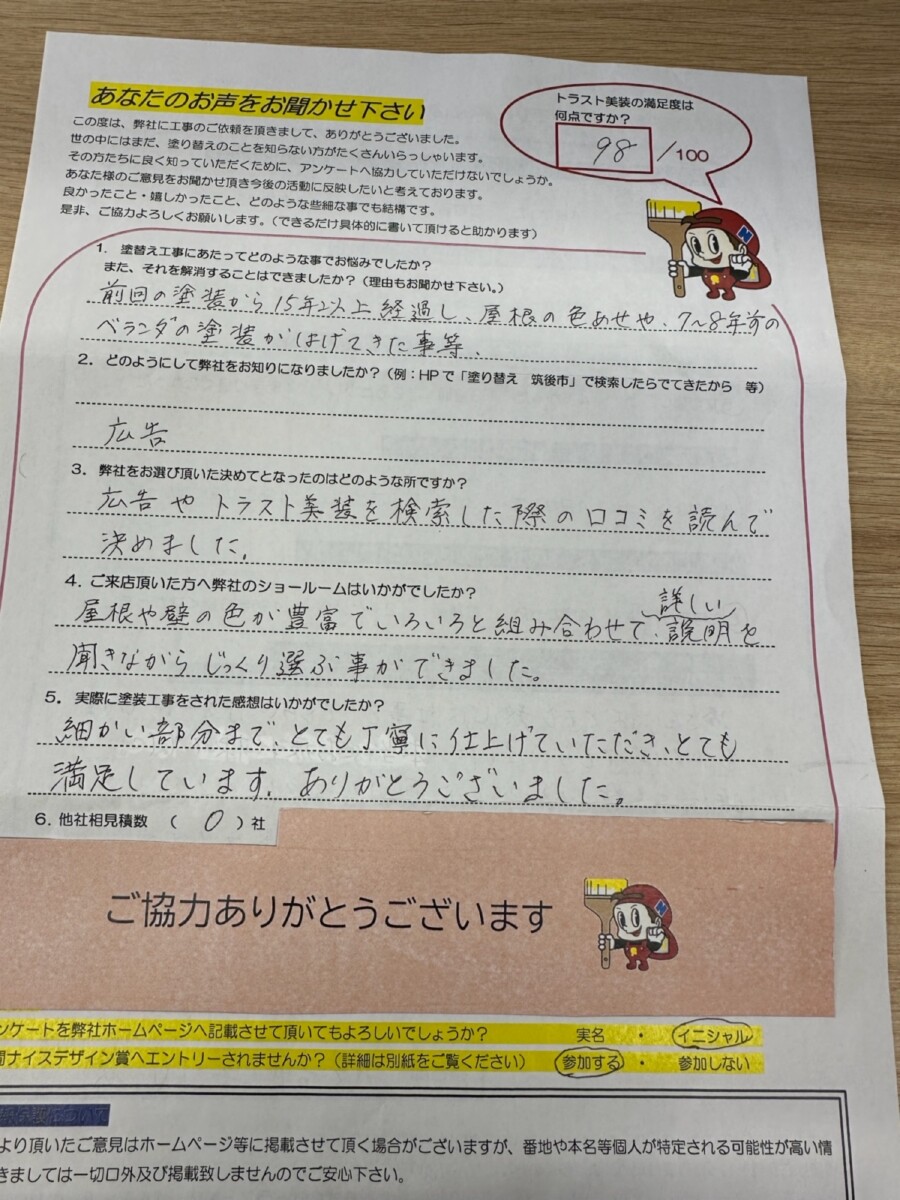 筑後市 H様(他社相見積0件) (外壁屋根塗装 98点!)