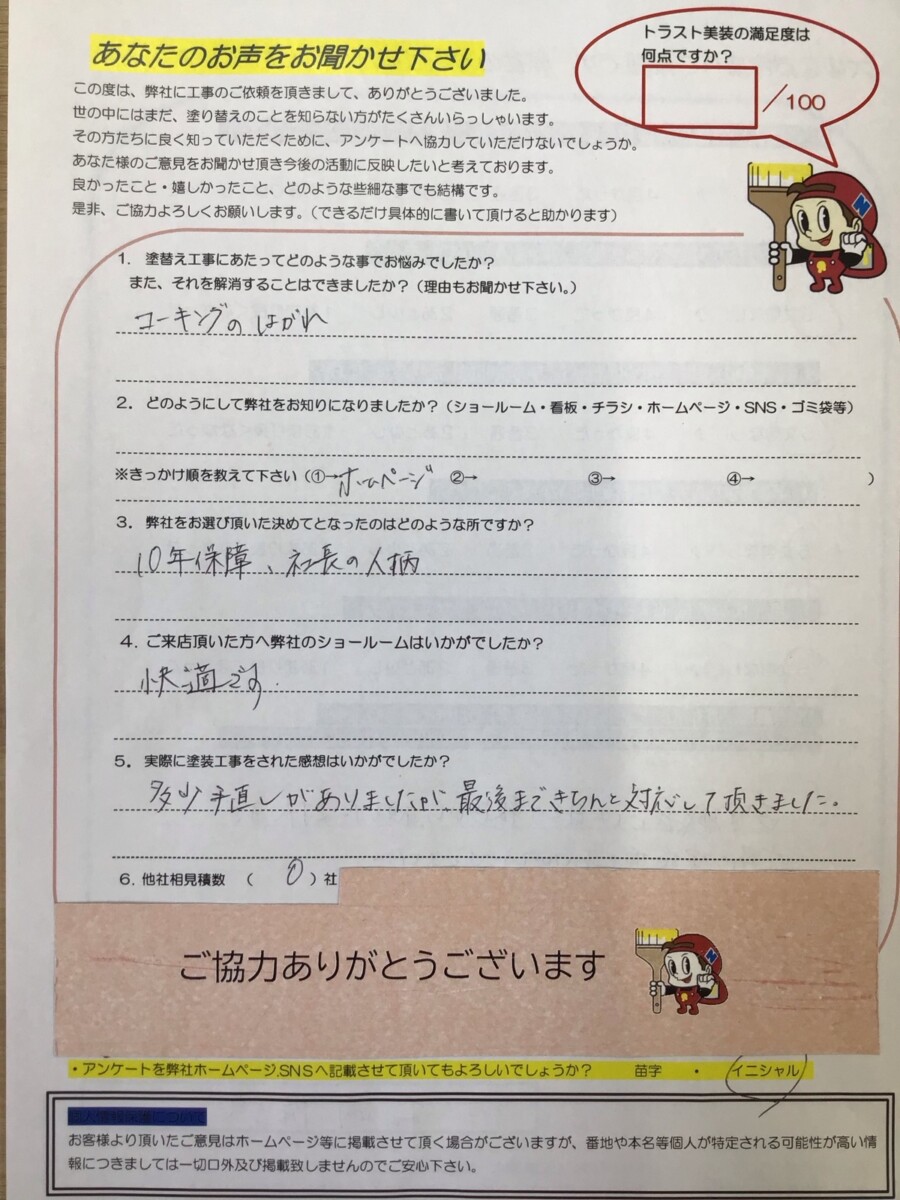 〔●多少手直しがありましたが、最後まできちんと対応して頂きました。〕