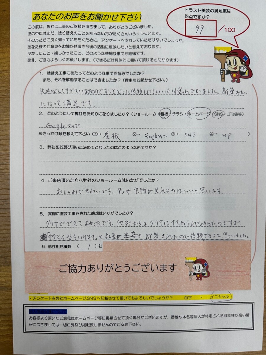 このたびは、トラスト美装をご利用いただき、誠にありがとうございました。
