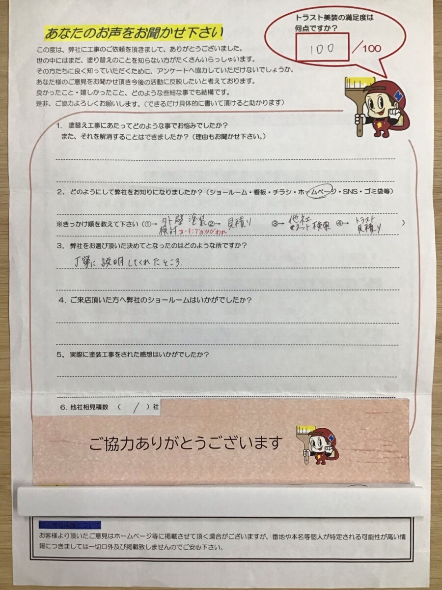 久留米市 H様(他社相見積1件) (外壁塗装工事 100点!)